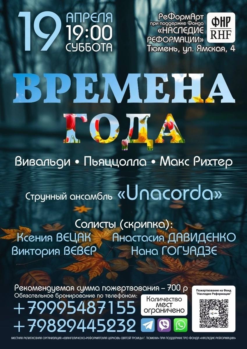 ✔️19 апреля: «Времена года» в исполнении солистов ТФО и ансамбля UnaCorda. Сравнение Вивальди, Пьяццоллы (в обработке Десятникова) и Макса Рихтера.
