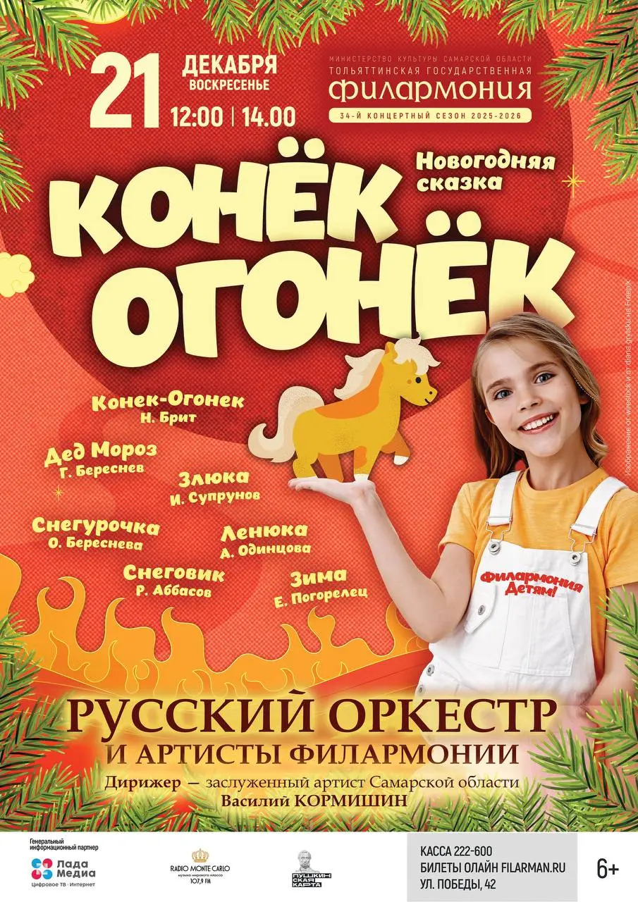 В течение недели с 15 по 21 декабря в Тольятти будет много интересного. Можно сходить в театр на спектакли: "Яблочный спас", "Собака", "Венецианские близнецы", "Конек-Огонек", "Моя жена - лгунья", "Снежная королева". Филиал предложит концерты: Юбилейный концерт Самарской филармонии, "Волшебник Джаз", "Формула музыки. Восточный экспресс", Хор Русского Рока при свечах. 🎶 Также будут мастер-классы и новогодний цифровой КВИЗ. Для детей представят различные сказки и спектакли. праздничные события!