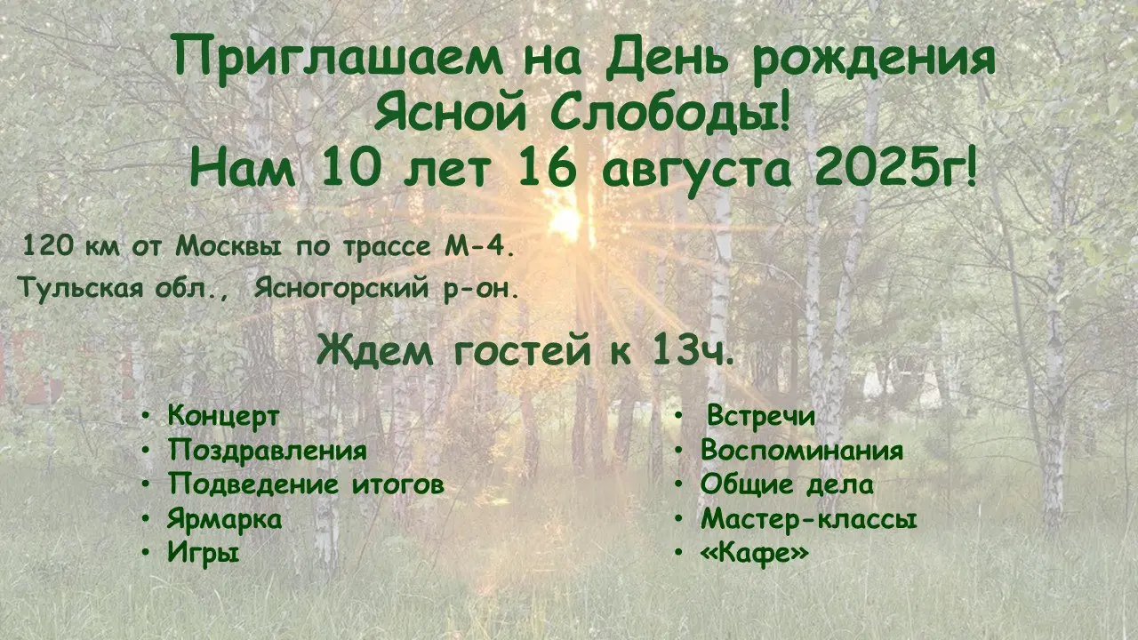 Программа проходит в палаточной зоне на территории Ясной Слободы.